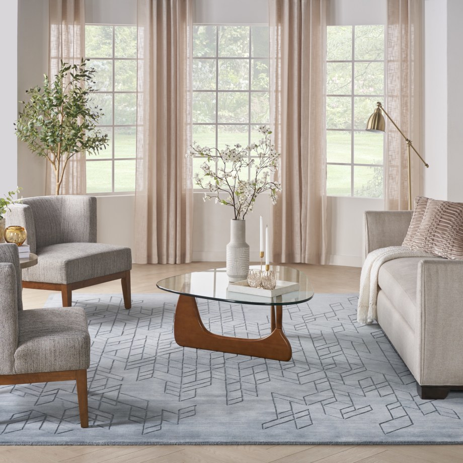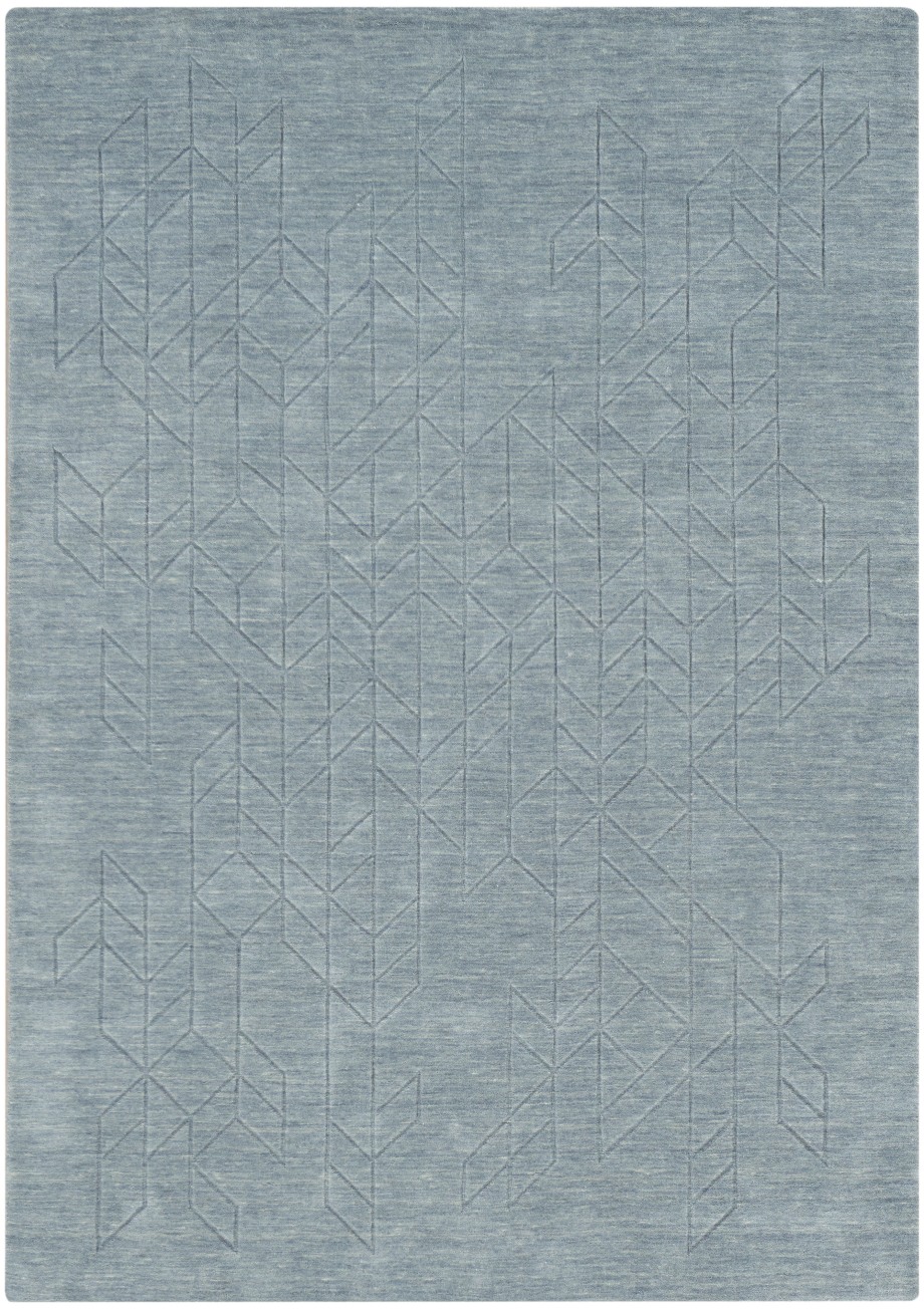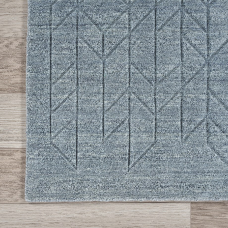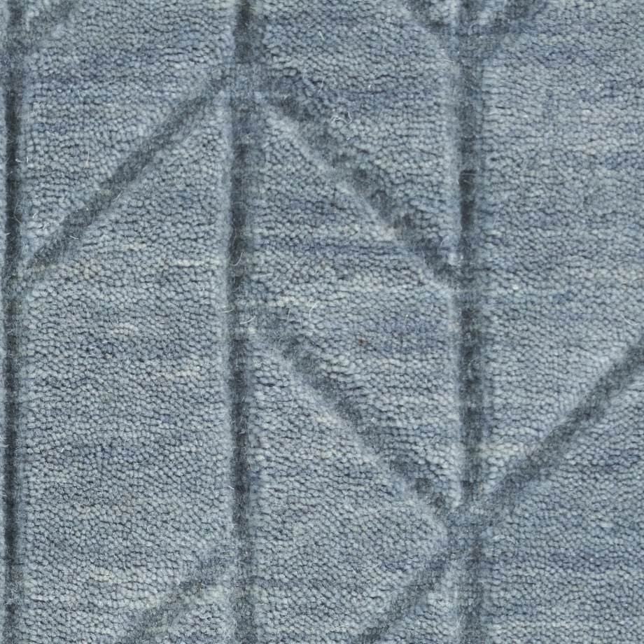 This modern blue rug from the Alessia Collection adds cozy style to your decor. Effortlessly blending style and function, this neutral rug features a heathered ground that adds nuanced color variations, a carved geometric pattern that offers a subtle layer of depth, and a medium-thick pile that has a softly cushioned texture. Handmade from 100% European wool; no backing.