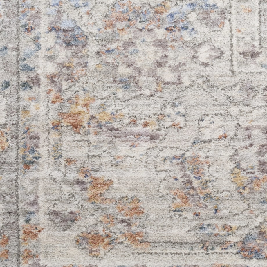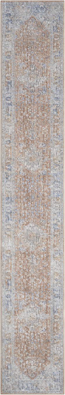 Bring a storied look to your home with this Persian rug from the Elegant Heirlooms Collection. The ornate floral medallion pattern is enhanced with a space-dyed effect that channels the unique tonal imperfections of a handmade heirloom. This vintage-style rug, presented in rust, grey, blue, and ivory tones, is made from low-profile polyester yarns that capture and reflect light. Elegant Heirlooms is finished at both ends with a short fringe; runner rugs do not include the fringe.