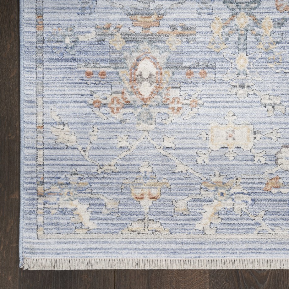 Invite a sense of character to your surroundings with this Persian rug from the Elegant Heirlooms Collection. The classic floral design, presented in soft blue, grey, and rust tones, is finished with a vintage fade that adds an instant touch of coziness and warmth. Space-dyed yarns mimic the tonal imperfections of a treasured heirloom, which is completed at both ends with a short fringe. Made from polyester yarns enhanced with a soft sheen that shifts in tone with changes in light. Runner rugs do not include the fringe.