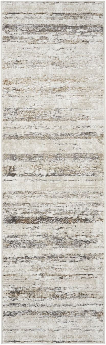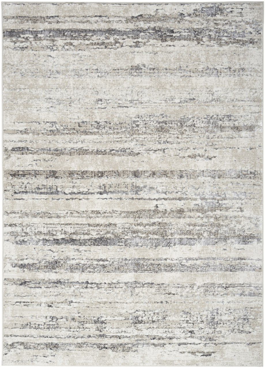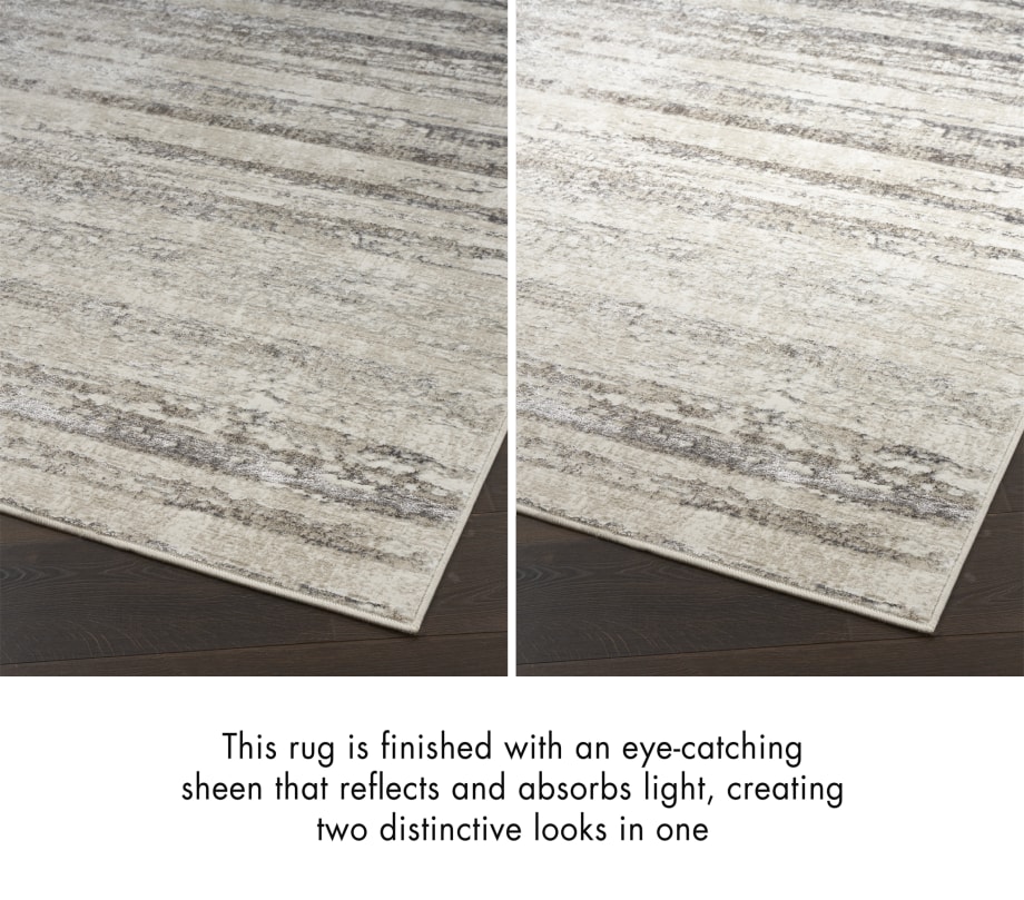 Enhance your space with the sophisticated look of this abstract rug from the Glitz Collection. Neutral shades of cream and grey create a sense of depth made even more brilliant by a metallic sheen. Made from softly textured polyester yarns that are easy to clean.