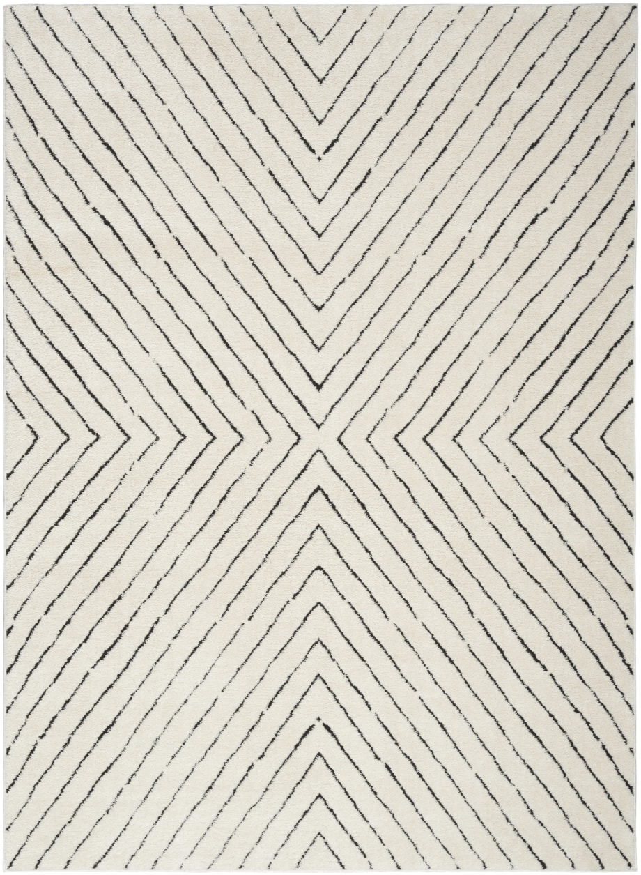 Add an instant layer of warmth to your home with this black and white rug from the Modern Comfort Collection. The simple linear pattern effortlessly blends form and function thanks to a cozy polyester pile that’s low maintenance and easy to clean. Made in a medium-thick construction ideal for placement in your living room or bedroom.