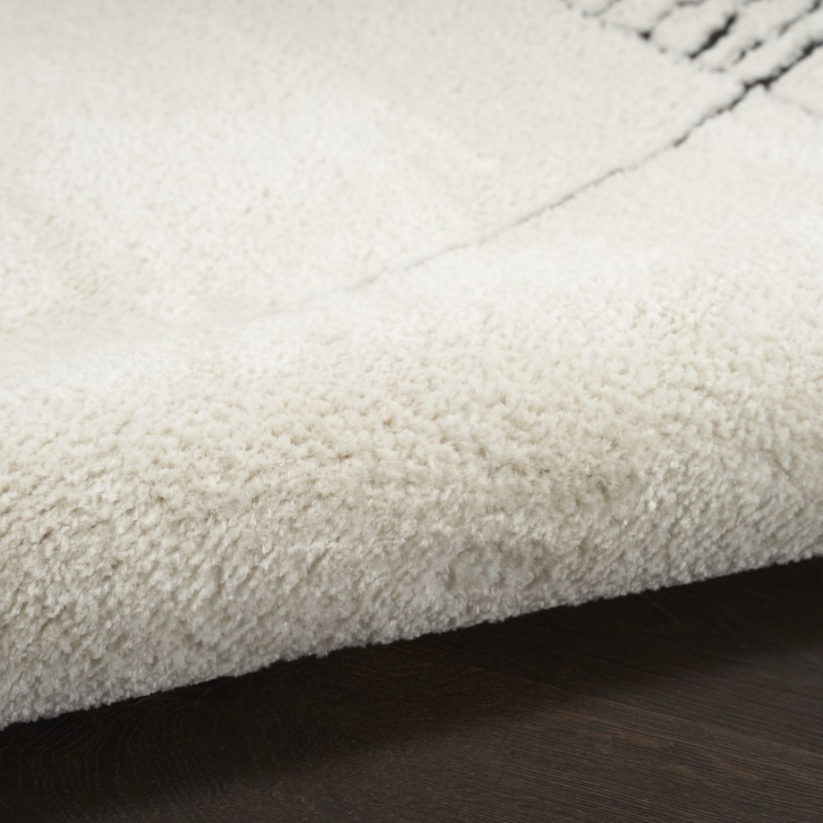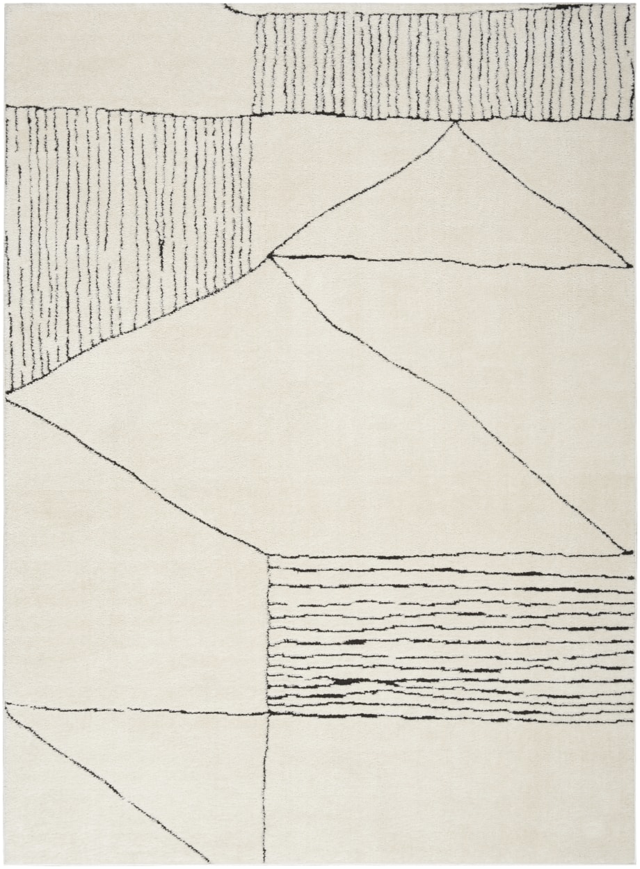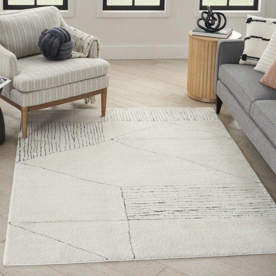 Bring clean, understated style to your space with this black and white rug from the Modern Comfort Collection. The abstract linear pattern, inspired by Scandinavian minimalist decor, adds sophisticated energy to your living room or bedroom. Made from softly textured polyester yarns for easy cleaning and stress-free maintenance.
