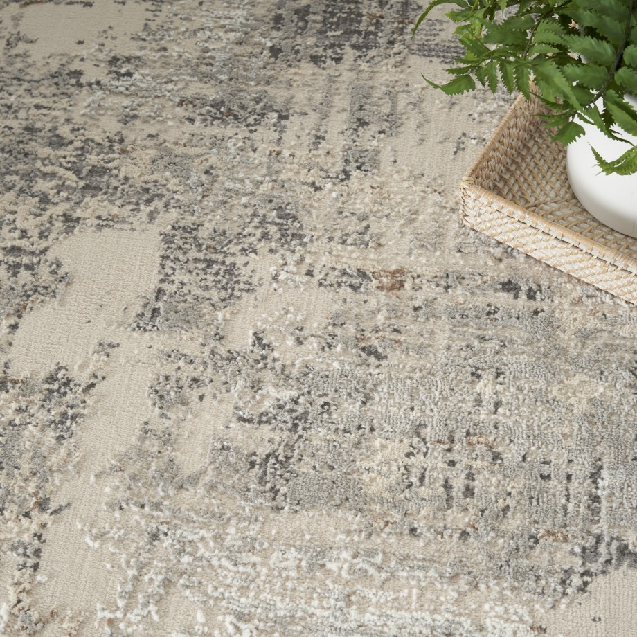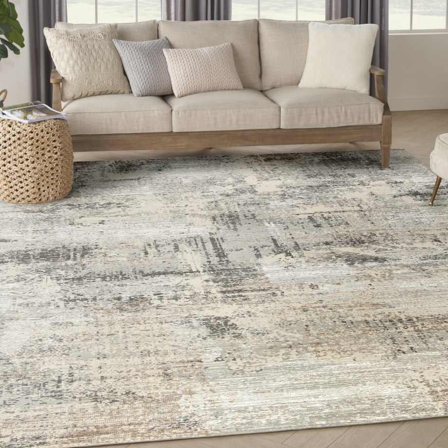 Add a refreshing burst of modern style to your home with this abstract rug from the Sustainable Trends Collection. Splashes of beige, brown, and multi-tonal grey add a distinctively urban look that beautifully complements neutral décor. Woven from recycled polyester yarns, this softly textured rug is ultra-durable for fuss-free cleaning and lasting style.