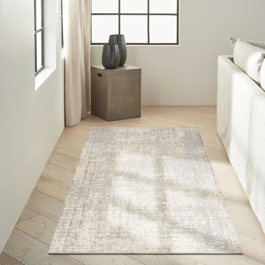 Experience the raw energy of CALVIN KLEIN with this Rush Collection area rug. Its abstract design, with linear detailing, creates pools of soft color, while the high-low pile builds exceptional texture and dimension. A subtle statement piece in natural, neutral tones of mineral grey and beige on ivory.