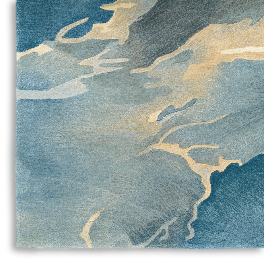 Create a dynamic focal point for your décor with this abstract rug from the Prismatic collection. Deep greys, blues, and beige tones capture the mesmerizing beauty of a stormy sky, enhanced by silky fibers that highlight the intricate details. This modern rug is handmade from a blend of New Zealand wool and silk-like Luxcelle™, with hand-carved accents adding rich texture.