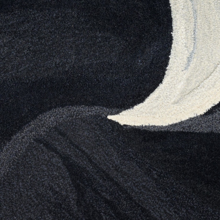 Bring any room to the forefront of avant-garde style with this abstract rug from the Prismatic collection. Swirling black, grey, and ivory tones create a deeply entrancing centerpiece, made even more stunning by a dimensional hand-carved finish. Handmade from a blend of New Zealand wool and silk-like Luxcelle™ fibers that beautifully capture changes in light.