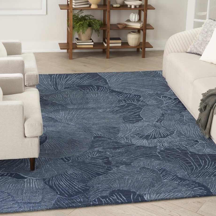 Refresh your space with the charming style of this blue floral rug from the Avra Collection. The oversized botanical pattern is tufted with a textured cut-and-loop pile that adds a subtle sense of depth, making it a beautiful complement for your living room or bedroom décor. Handmade of wool, this contemporary rug is available in a variety of sizes, from 5 x 8 rugs for bedrooms and small spaces to large 8 x 10 and 9 x 12 rugs.