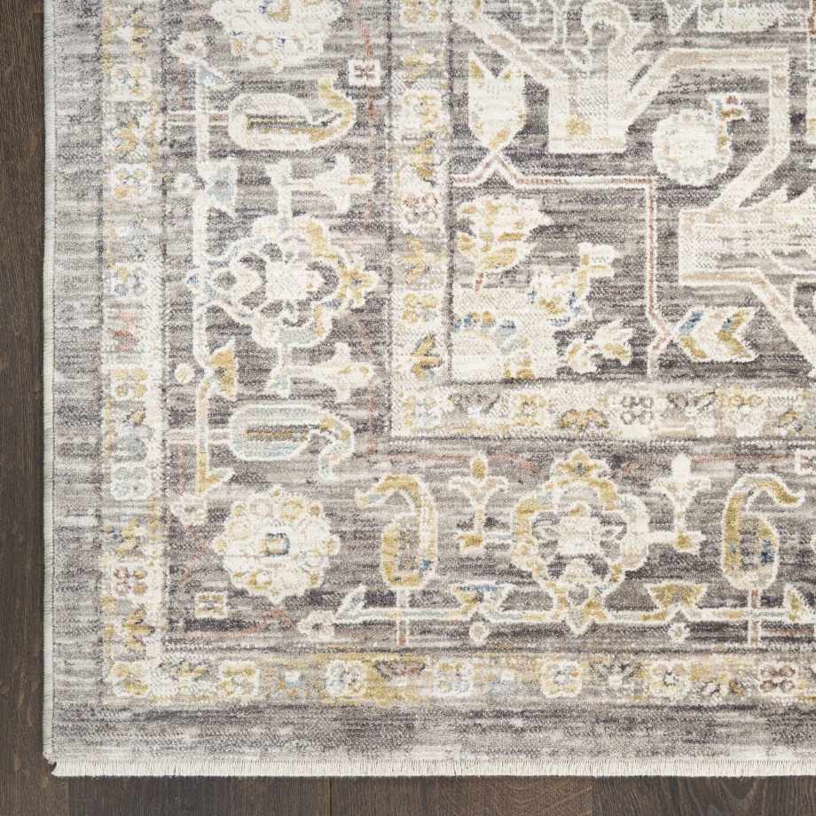 Bring a cozy yet structured look to your space with this vintage-style charcoal rug from the Antique Fusion collection. The striking central medallion pattern and matching border is finished with a distressed effect that gives an heirloom look. Fringe edges complete the look, making this Persian-inspired rug a great choice for living rooms and bedrooms.