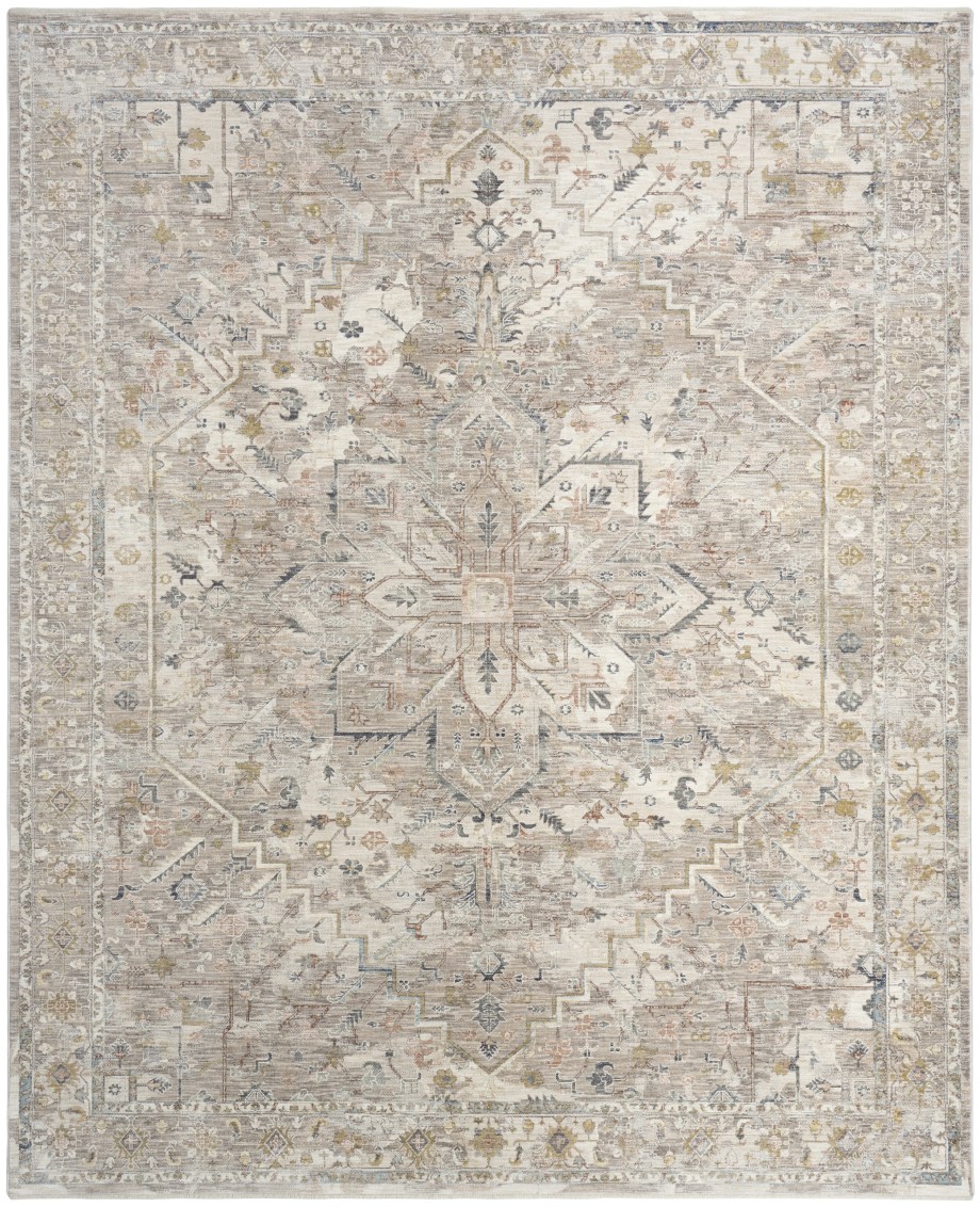 Invite the beauty of old-world artistry to your space with this vintage-style ivory multicolor rug from the Antique Fusion collection. The classic medallion pattern and delicate floral border is finished with subtle tonal variations that channel a timeworn feel. Delicate fringe and a neutral palette complete the look.