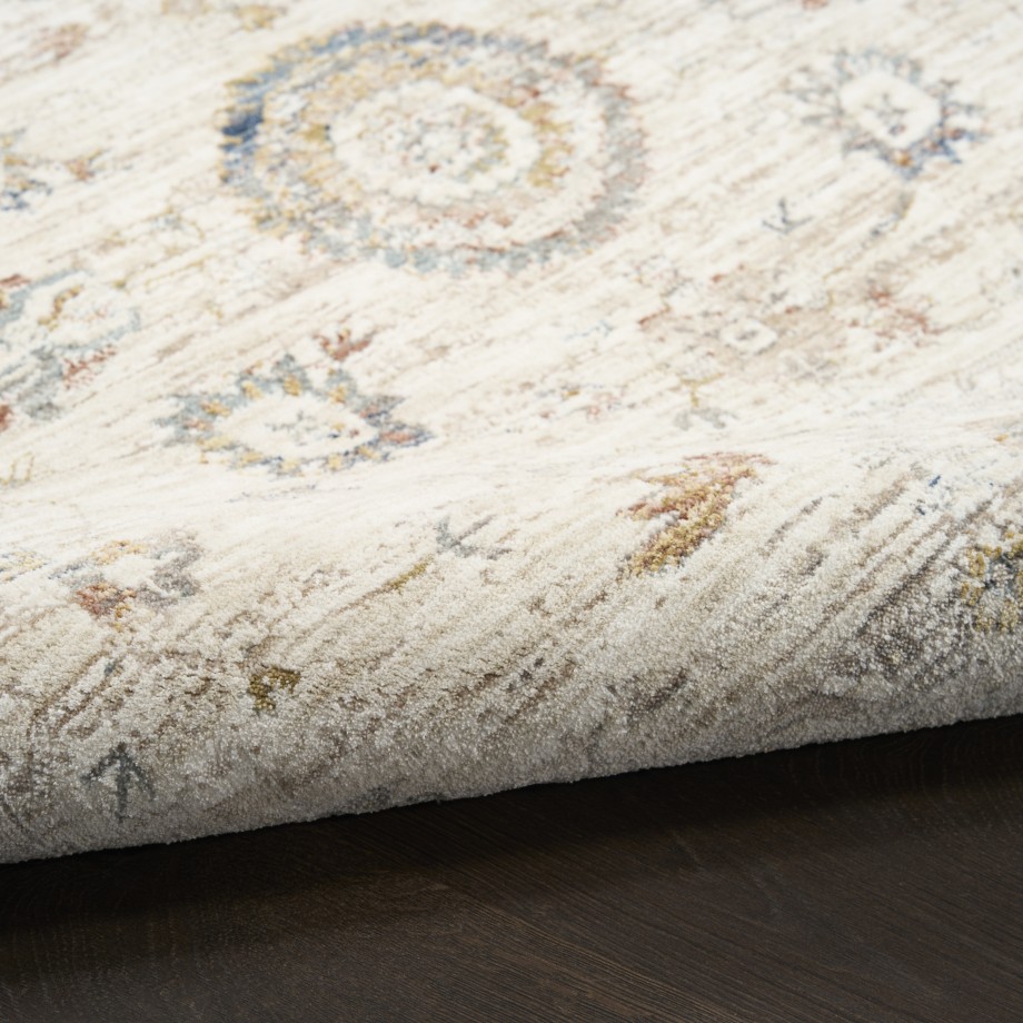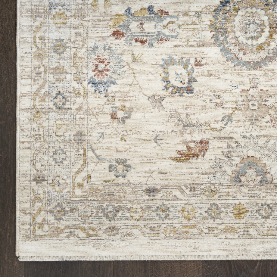 Invite a cozy, cottage-themed vibe to your decor with this vintage-style ivory multicolor rug from the Antique Fusion collection. The dainty floral pattern is complemented by artful distressing and short fringe edges, making it a great addition to farmhouse and cottagecore decor.