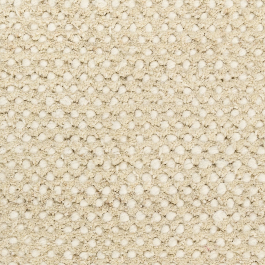 This ivory and beige rug combines subtle texture with warm tones, creating a comforting foundation for your space. Handwoven from a wool and polyester blend for lasting style.