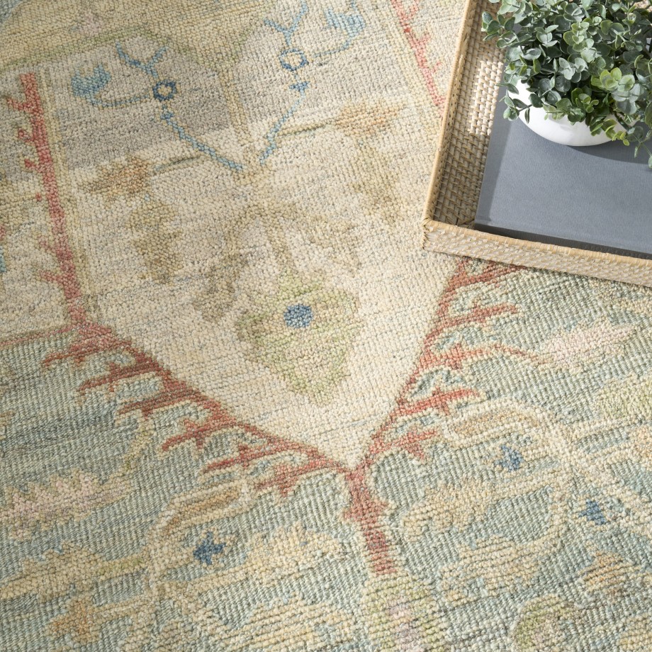 This vintage-inspired rug from the Heritage Vine Collection features a stunning central medallion design that adds an instant touch of character to any space. Natural vegetable dyes impart an antique feel, while subtly raised textural accents add a subtle layer of depth. Hand-knotted with short fringe at both ends for lasting comfort and visual appeal.
