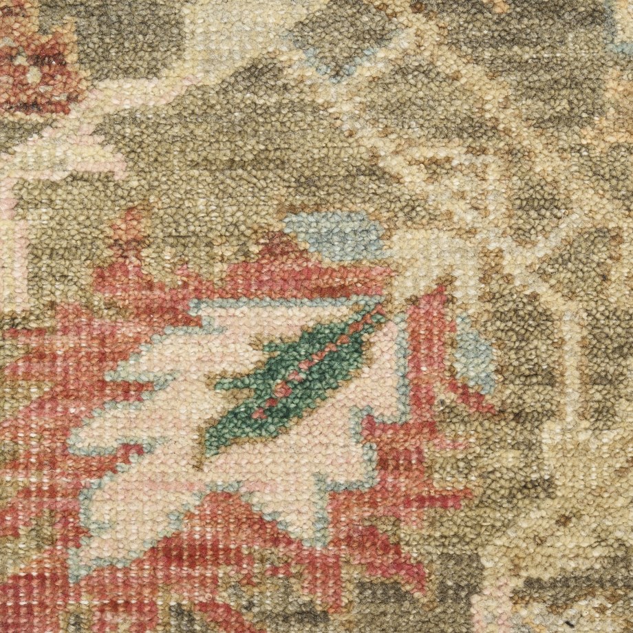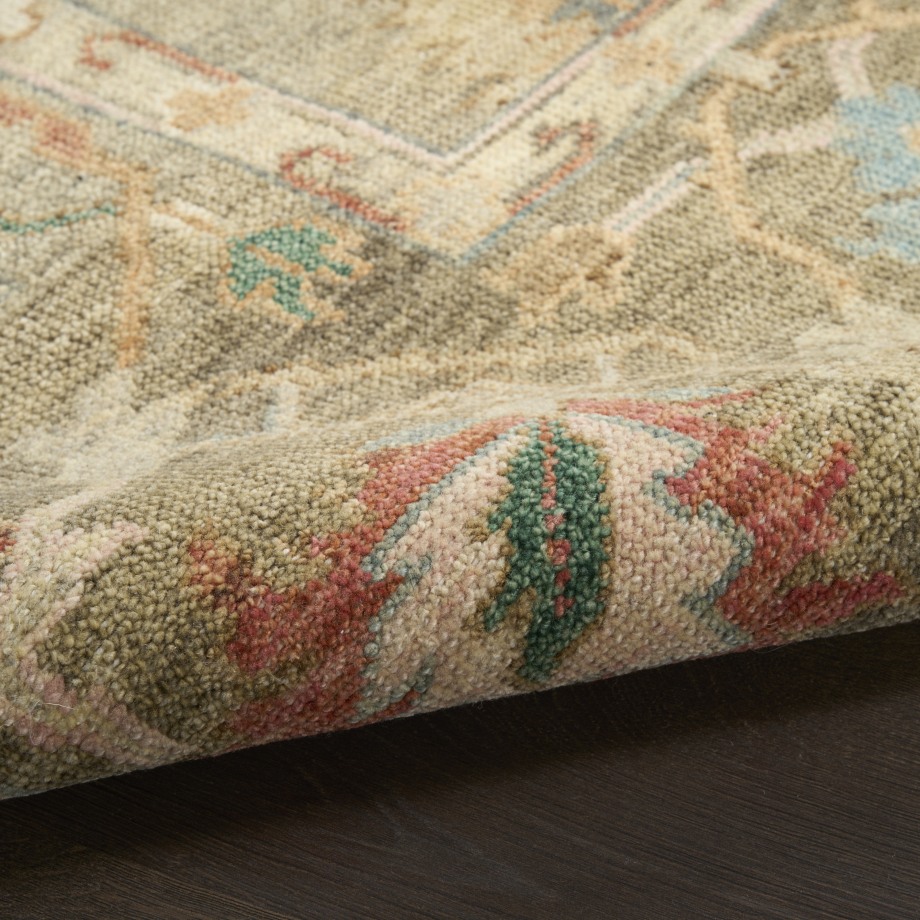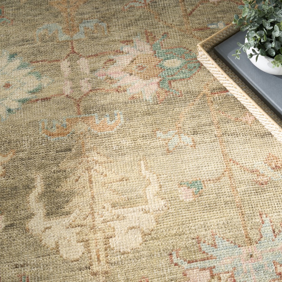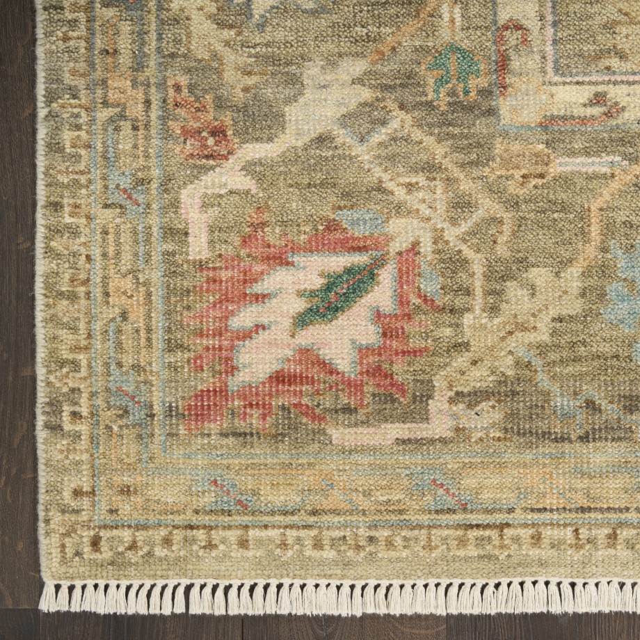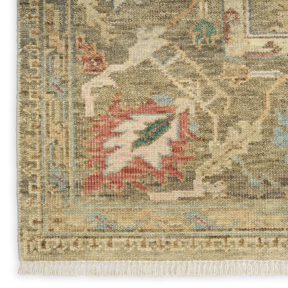 Invite a touch of understated elegance to your space with this vintage-inspired rug from the Heritage Vine Collection. Expertly hand-knotted and finished with a short fringe, this rug is crafted using vegetable dyes that channel the look and feel of a treasured antique. Finished with a subtly dimensional texture for added visual interest.
