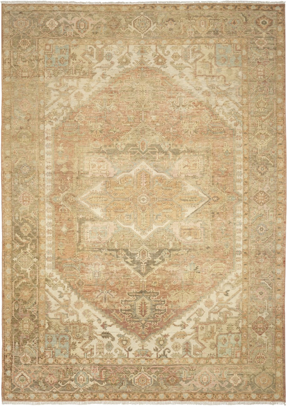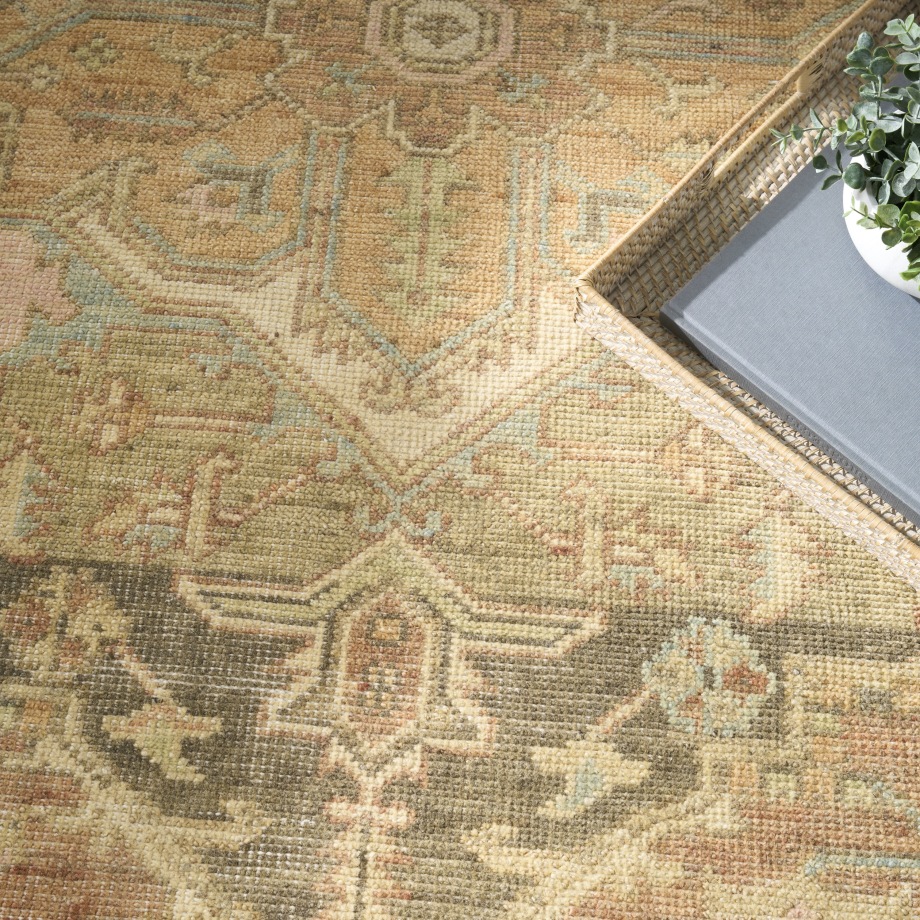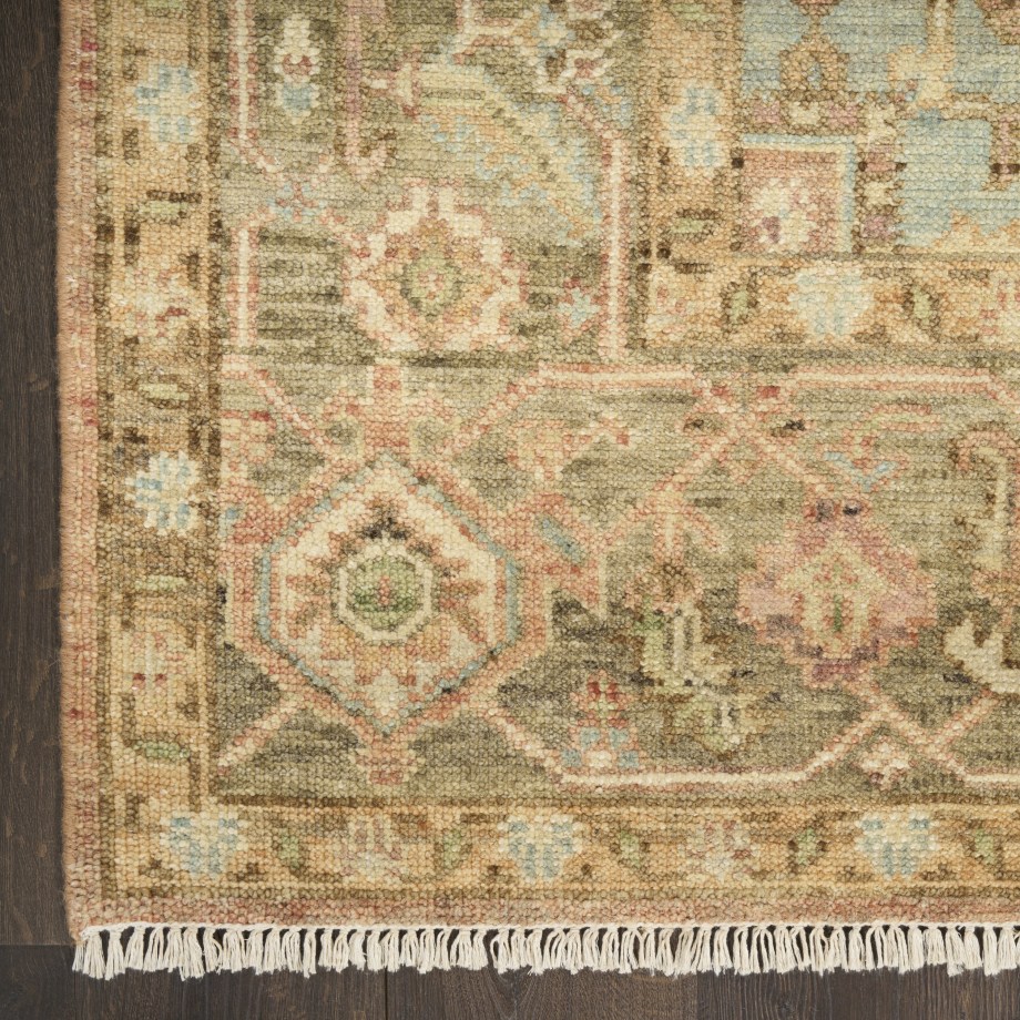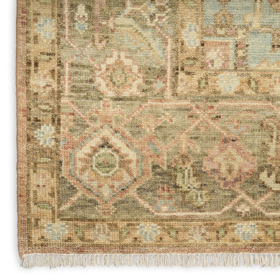Create a striking centrepiece for your décor with this vintage-inspired rug from the Heritage Vine Collection. The intricate centre medallion design invites worldly appeal to your space through its use of short fringe and vegetable dyes that impart a time-worn look. Hand-knotted with a subtly dimensional texture for lasting style and visual appeal.