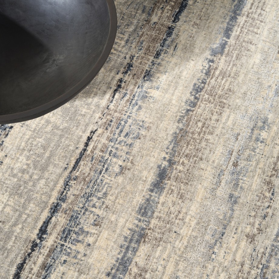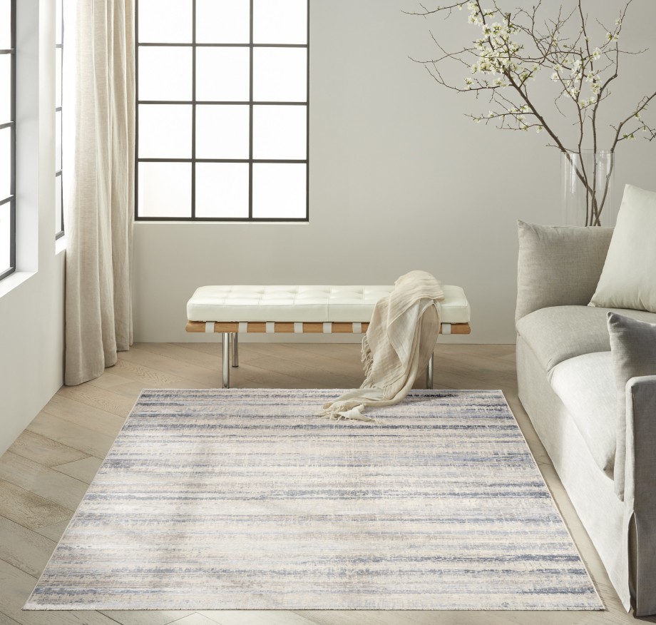 Invite a breezy, laid-back feel to your space with this rug from the Calvin Klein Drift collection. The striated, abstract pattern showcases a hazy blue and grey palette, with short fringe edges that add subtle texture.