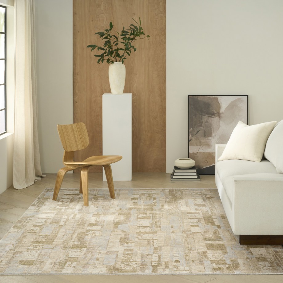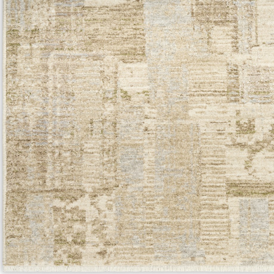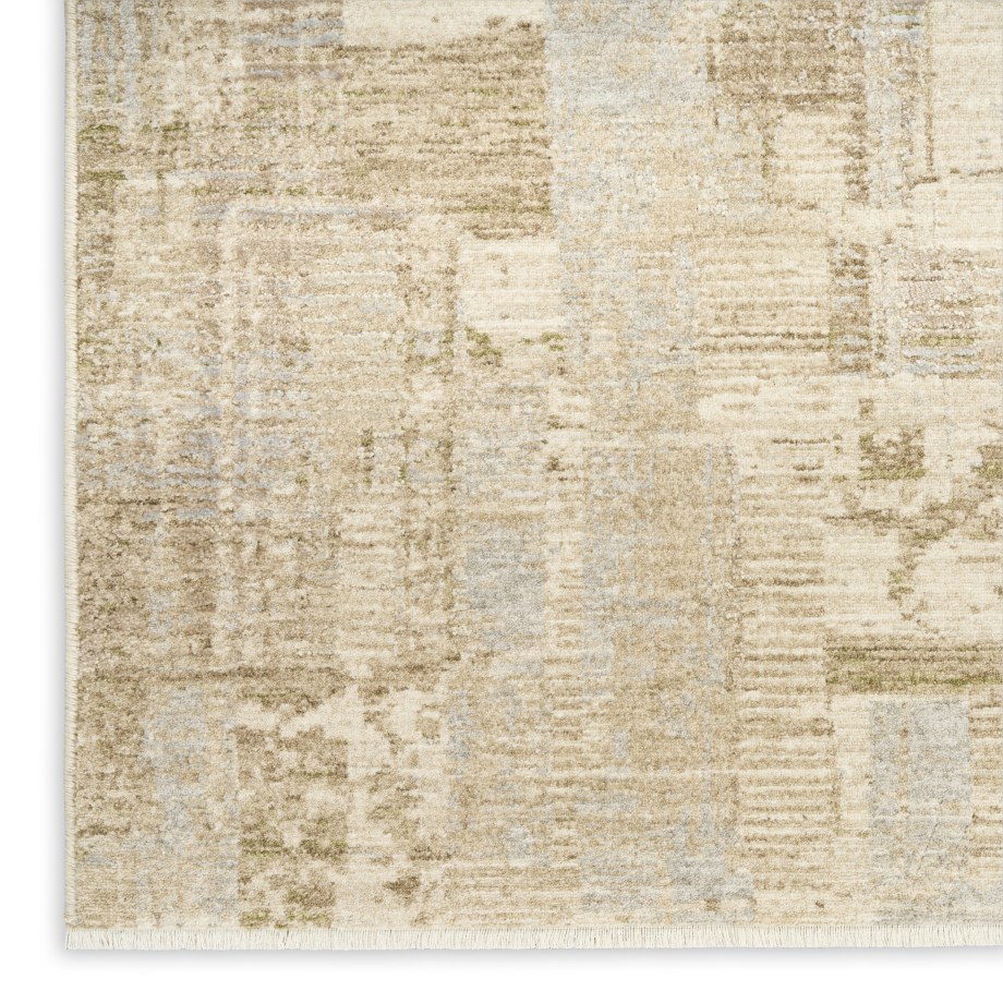 Invite a sense of calm with the beige and grey rug from the Calvin Klein Drift collection. The abstract pattern uses tonal striations that create a textured look with a relaxing effect, finished with a short fringe.
