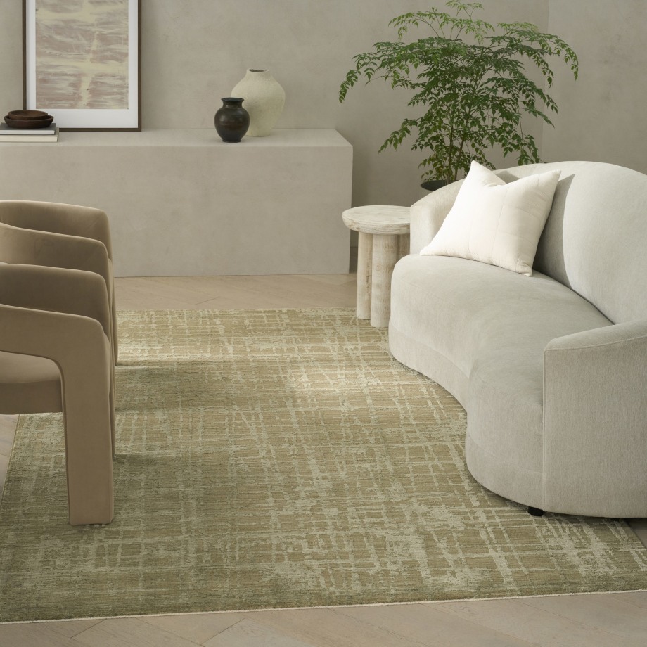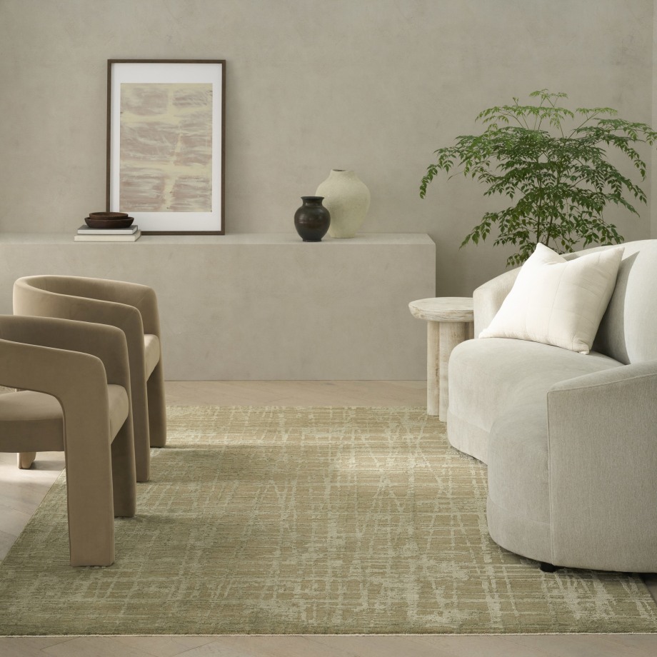 An understated design that grounds any space. The Calvin Klein Latitude abstract rug in green features a rich, elegant sheen and short fringe finish. Made from softly textured polyester.