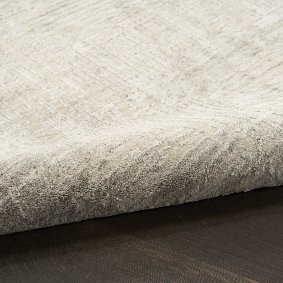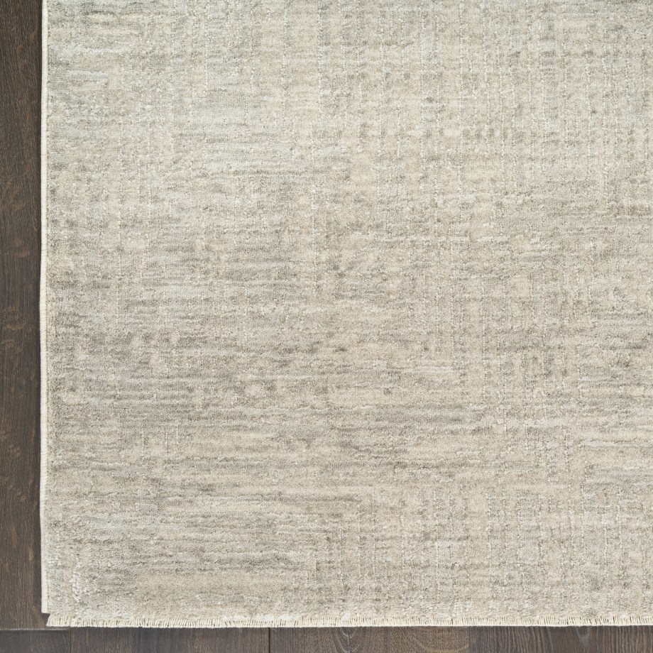 In cool grey tones, this rug from the DKNY Madison Square collection brings a sleek look to any room. A silky sheen illuminates the abstract pattern, while short fringe adds a touch of texture.