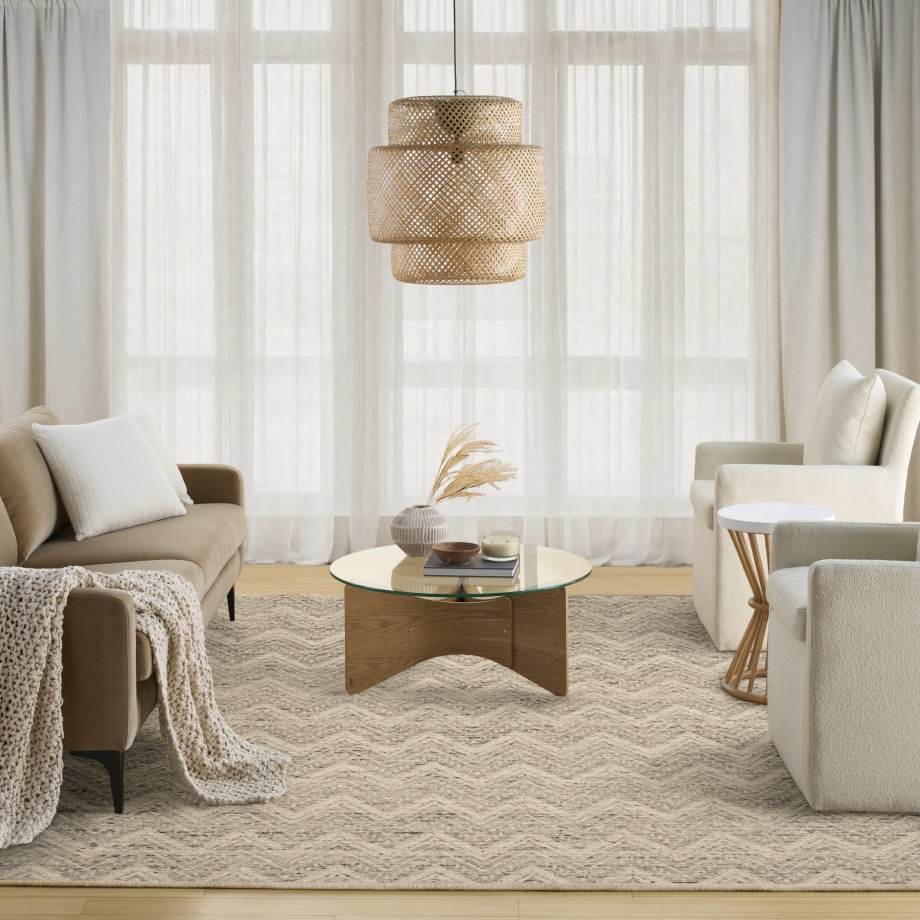 Layer in a sense of comfort with this grey-toned rug. Crafted with a chevron motif and tonal depth, it adds understated warmth to modern and minimalist interiors.