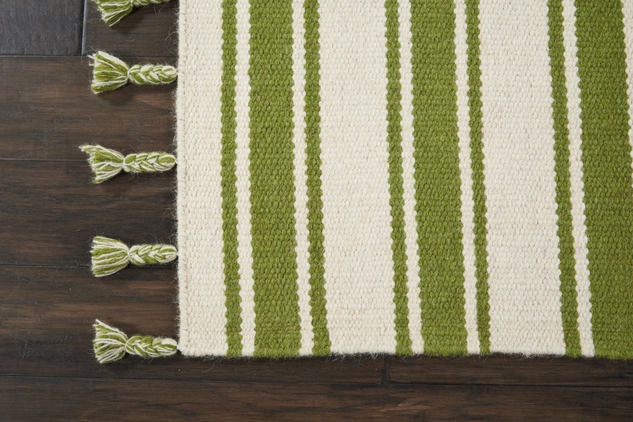 The Dhurrie design is native to India and loved for its chic simplicity, flat weave and natural gradations of tone and pattern. The Rio Vista Collection of Dhurrie area rugs from Nourison is hand woven from a terrifically-textured and longwearing wool with a cotton polyester blend and features an exciting array of neutral and bright color palettes to add an element of casual cool to any room. Fantastically fringed and reversible for maximum impact and versatility.