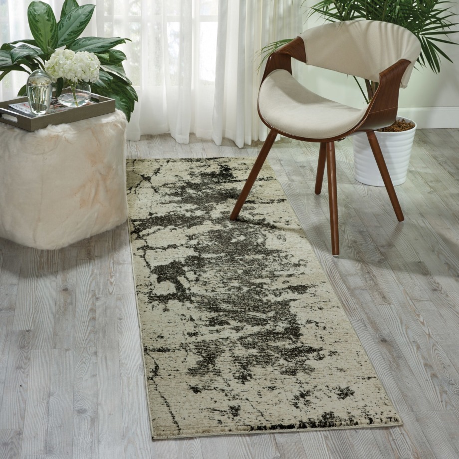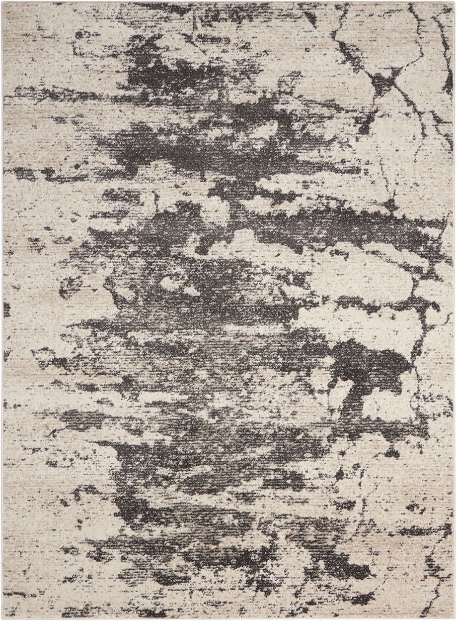 Enrich your décor with the heavenly beauty of this Maxell by Nourison area rug. The dramatic design will remind you of Renaissance paintings of gorgeous skyscapes where ancient gods, angels and cherubim frolic. In a lush chiascuro of flinty grey, cloud white and buff.