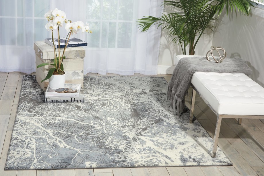 Enrich your décor with the heavenly beauty of this Maxell by Nourison area rug. The dramatic design will remind you of Renaissance paintings of gorgeous skyscapes where ancient gods, angels and cherubim frolic. In a lush chiascuro of flinty grey, cloud white and buff.