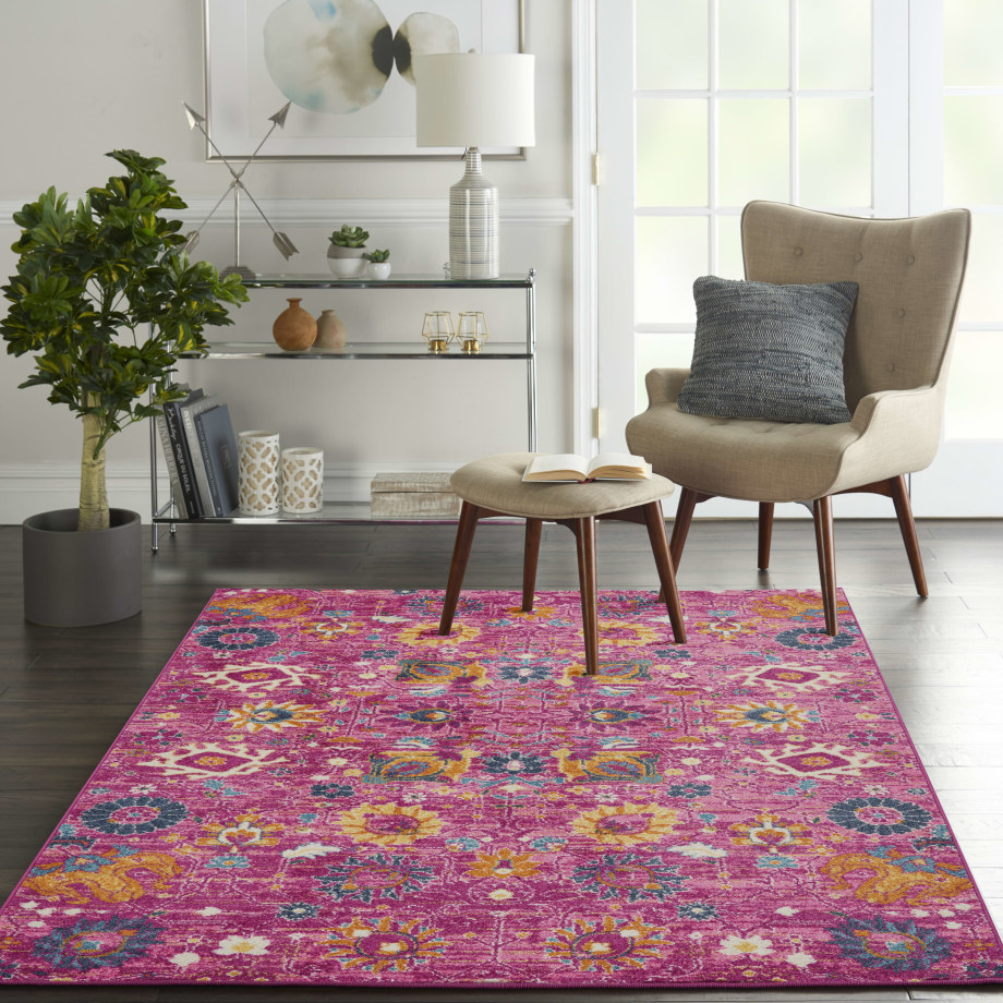 Rich, seductive color draws you into the plush beauty of the Passion Collection. These fantastic florals and dramatic geometric designs meld elements of classic Persian motifs with a bohemian sensibility. Woven of polypropylene fibers on state-of-the-art power looms, this collection of area rugs combines thick, comfortable pile with an easy-care approach. Advanced overdye techniques create an exciting patina effect in shades of pink, blue, and orange. Live a more colorful life with Passion in your home!