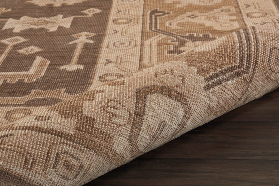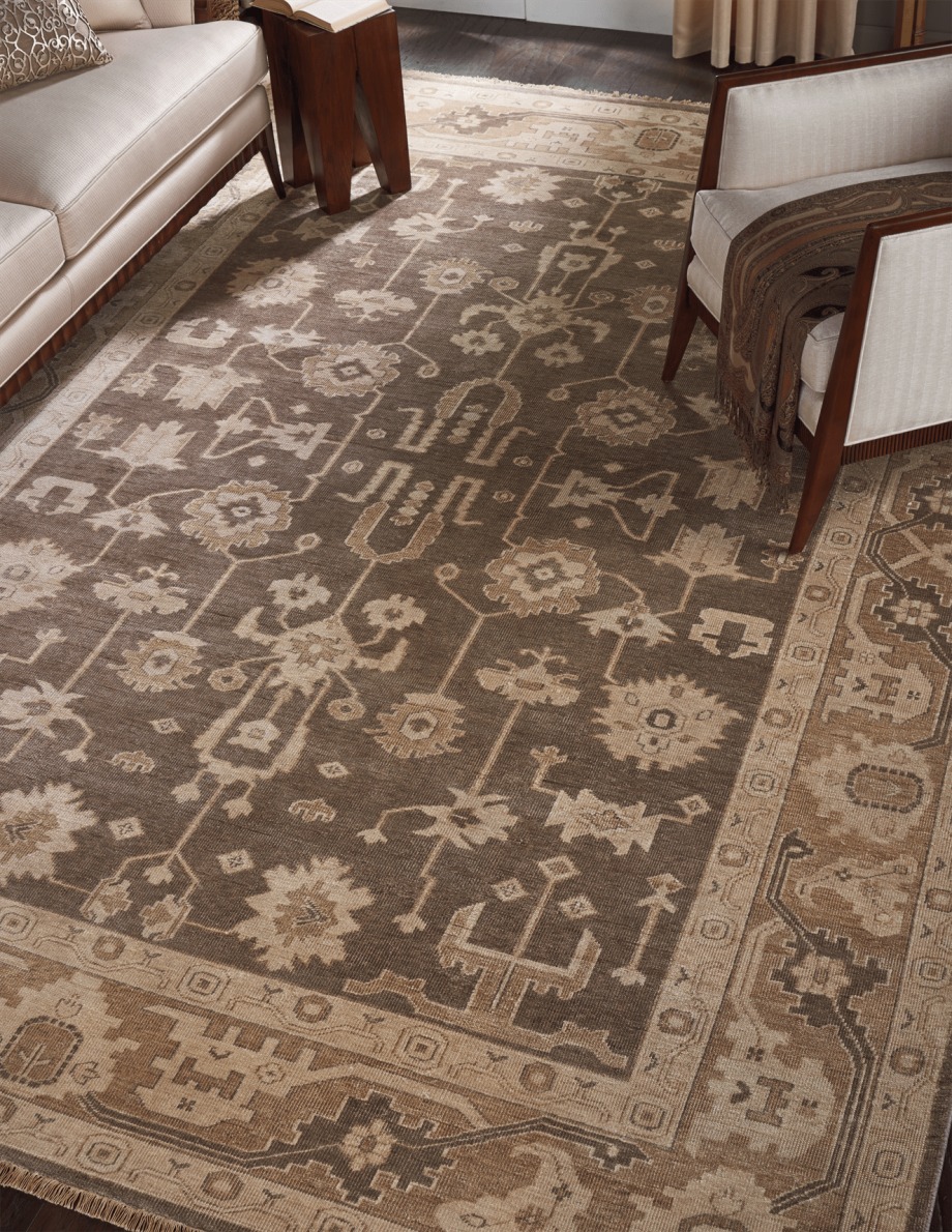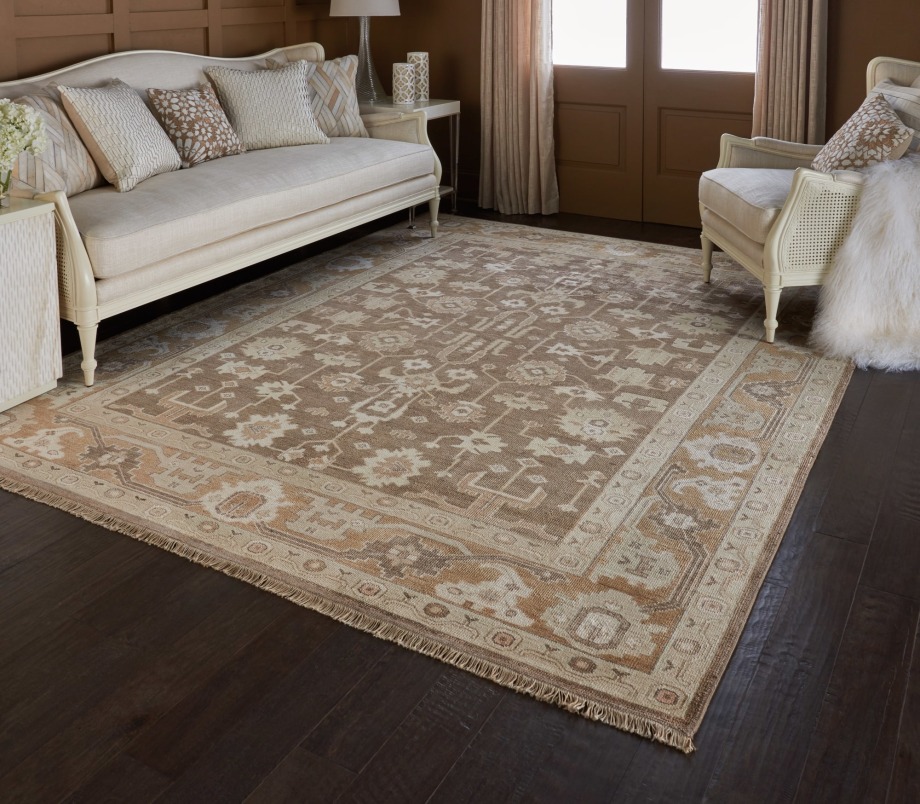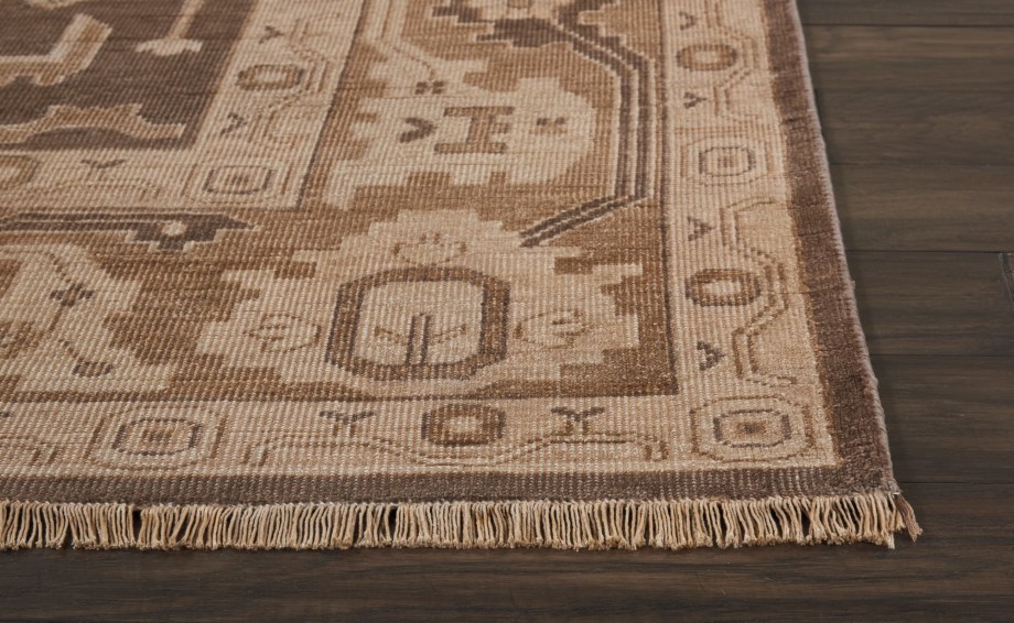 | A traditional leaf, vine and botanical design becomes downright dazzling when presented in molten hues of mocha, gold, taupe and ivory. Hand knotted from an outstanding cotton/ wool blend for a texture and tone that are nothing short of sensational. |