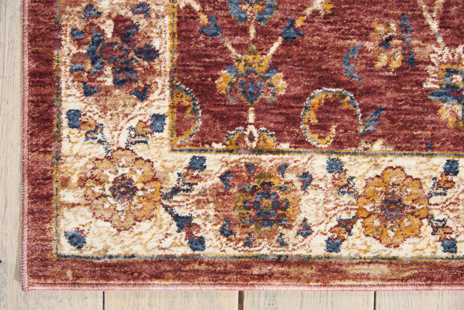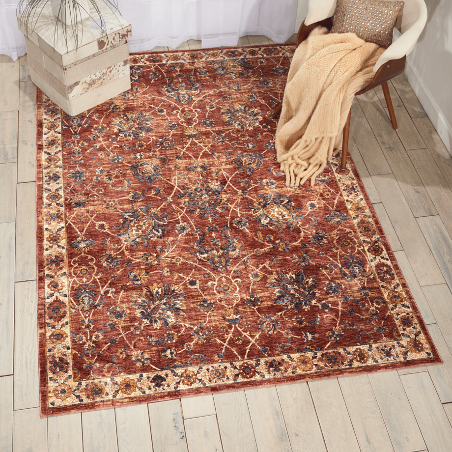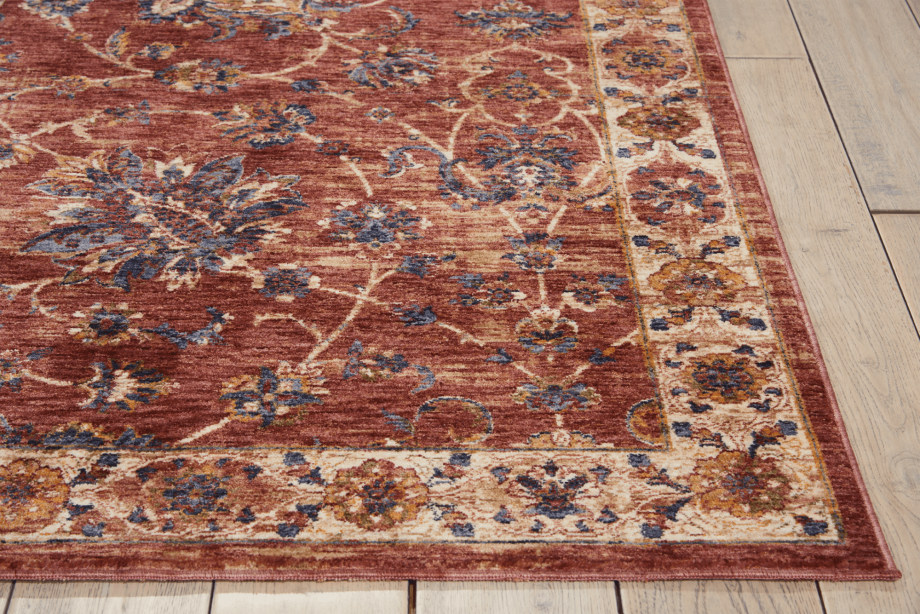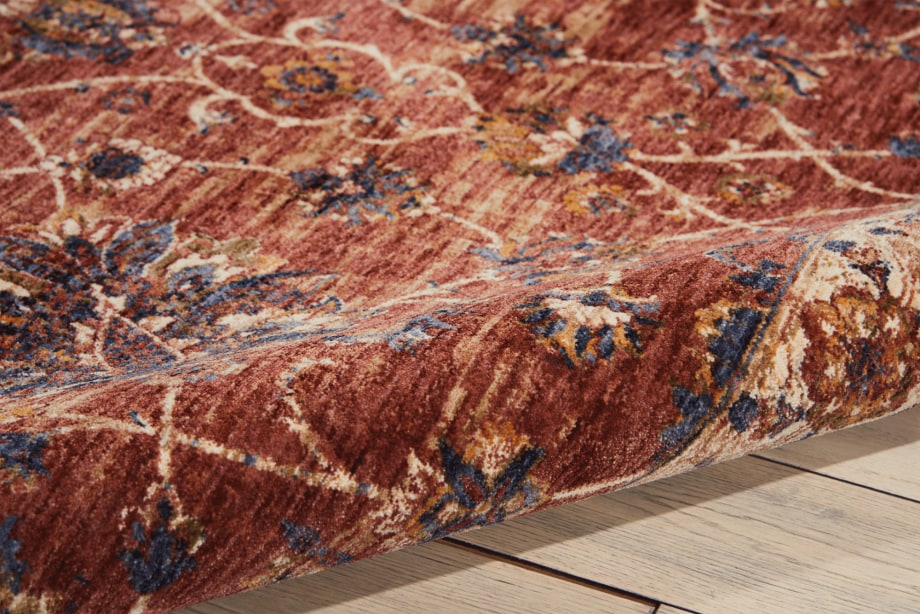 | Blossoms, blooms and vines gracefully intertwine in brilliant shades of brick, blue and cream in this stunning Lagos area rug from Nourison. Fabulously fabricated from a wonderfully-textured, ultra-long wearing polypropylene/polyester blend with a spotlight-stealing shine, this striking rug is smart, stylish and superb for high traffic areas. |