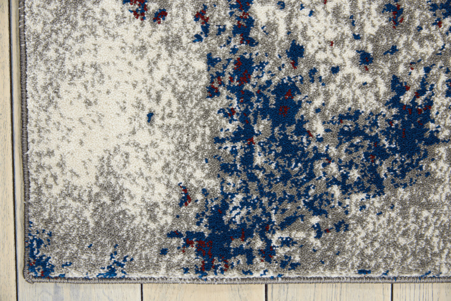| This magnificently modern Maxell area rug elicits images of abstract artistry. Simulated brush strokes and splashes of rich blue, red, ivory, and grey tones play out on a silky cut pile for a beautiful touch of contemporary comfort in any room in the home. |