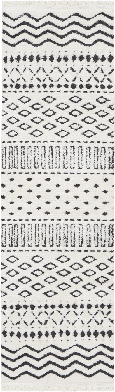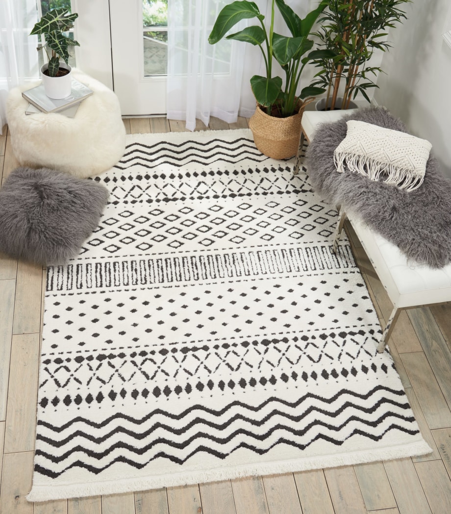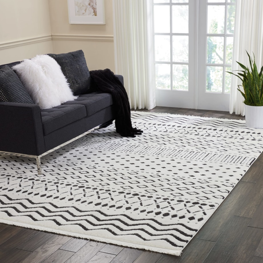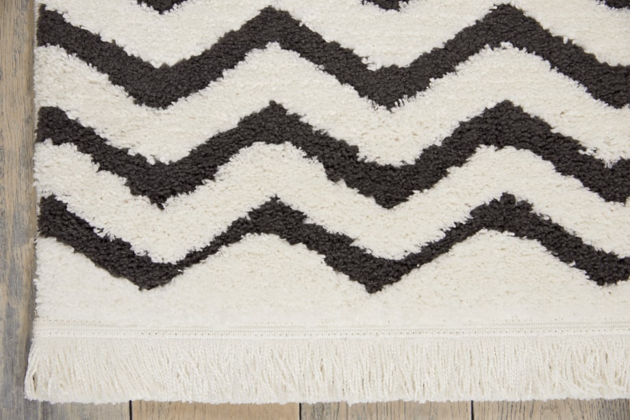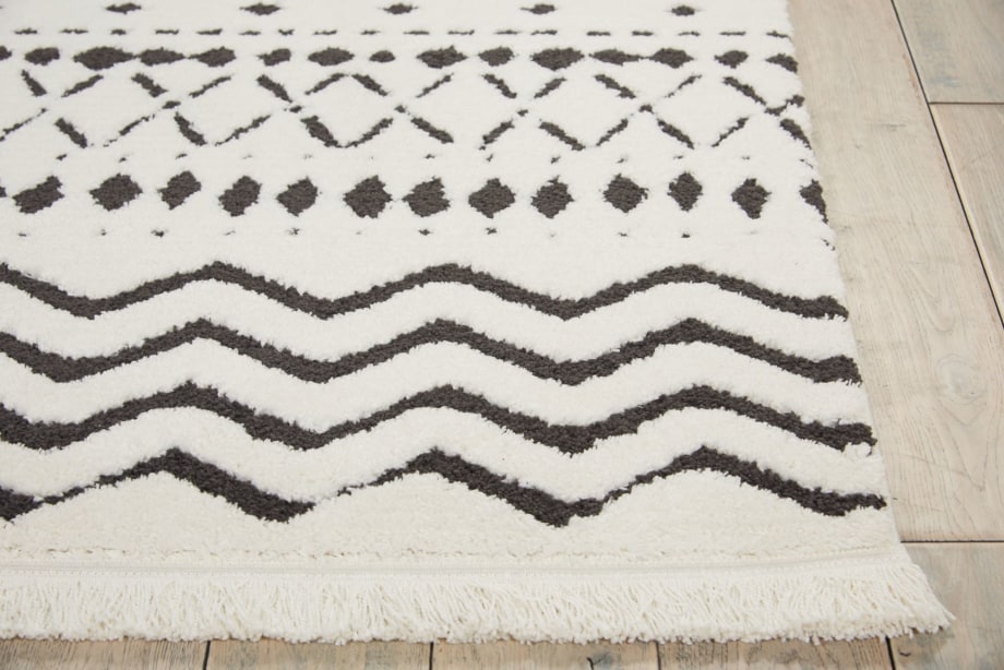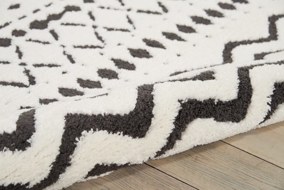 | A graphic charcoal design with a tribal touch on this intricately designed shag rug is an easy and engaging way to add casual flair to any room. Powerloomed for long wear and low maintenance, this Kamala area rug from Nourison provides a subtle energy and texture, and a relaxed vibe to any interior. |