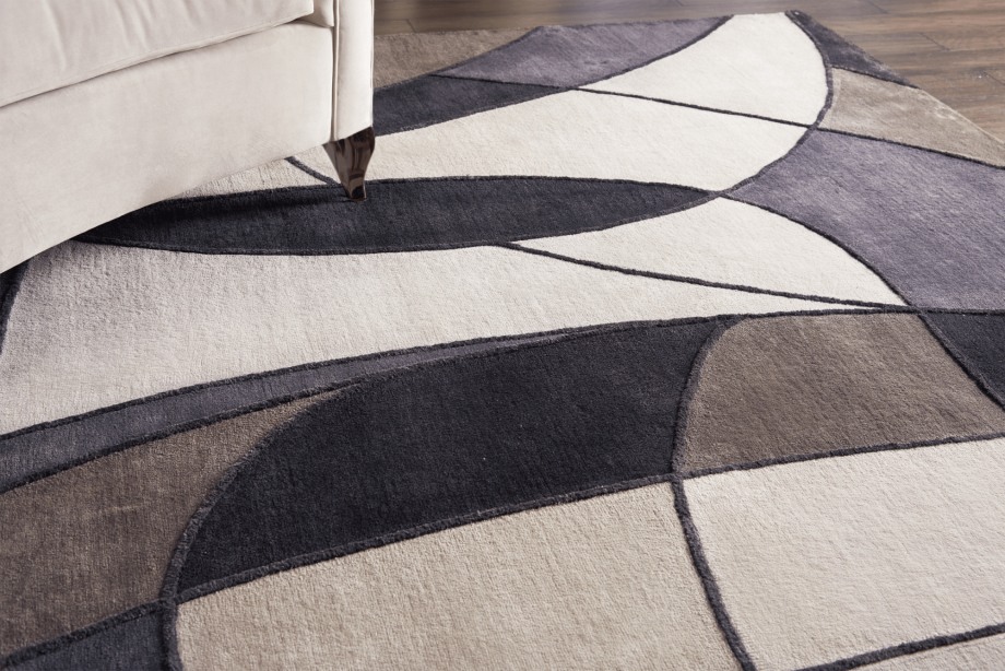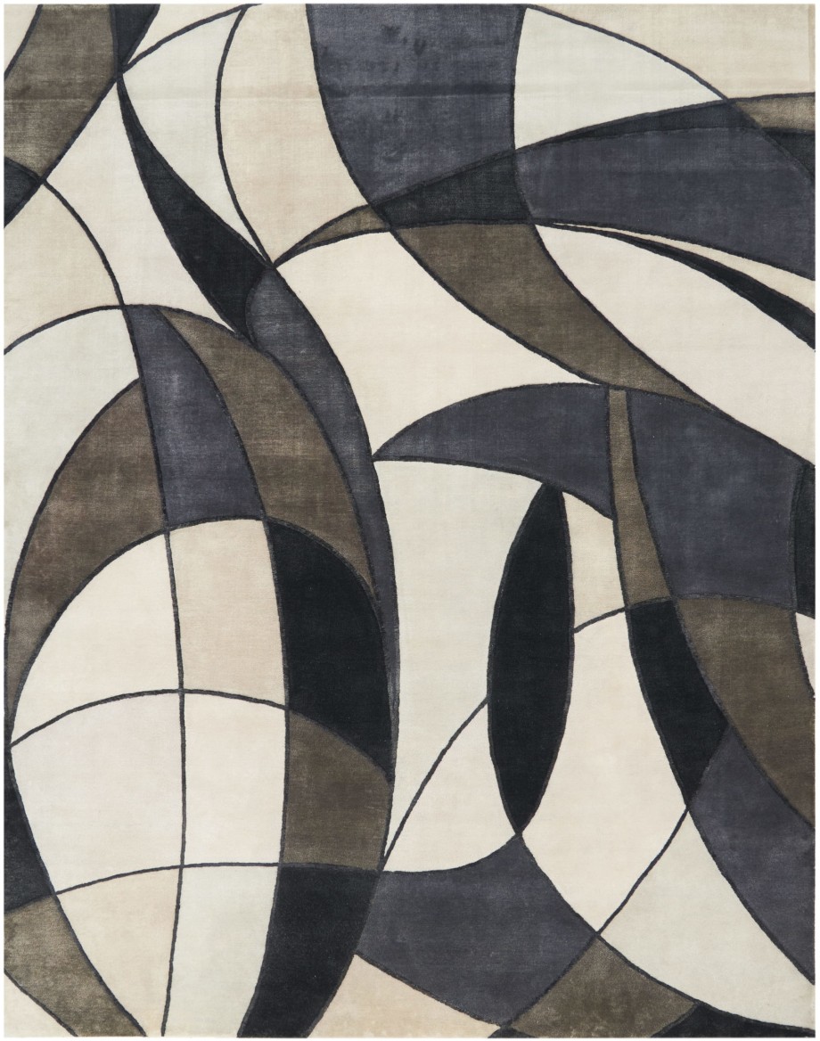 Rich warm tones of mink browns, Mediterranean sands, and chic greys blend together effortlessly in this cubist design of wool and silk.