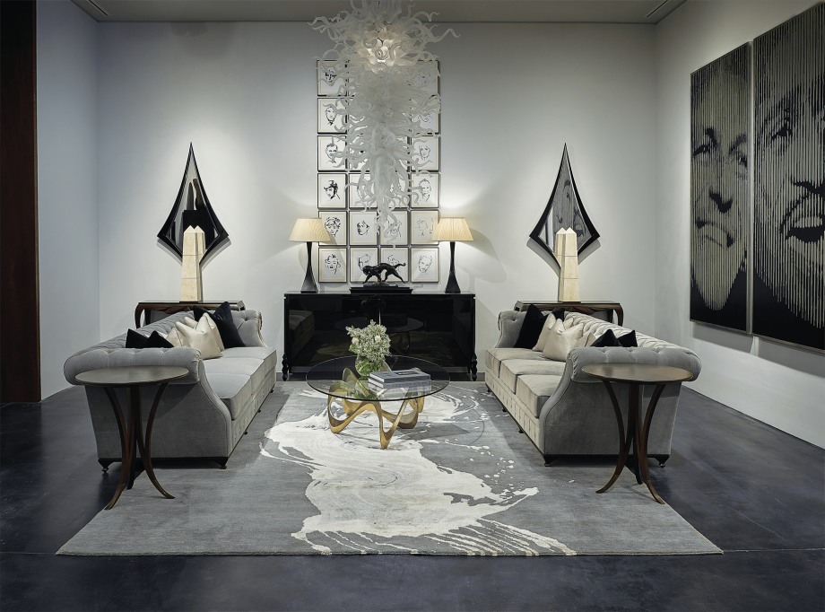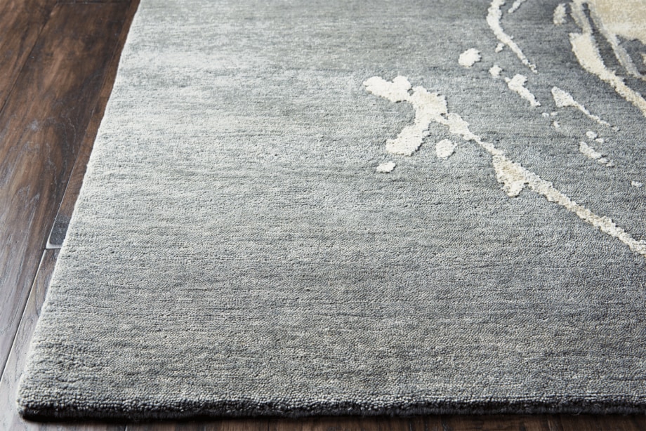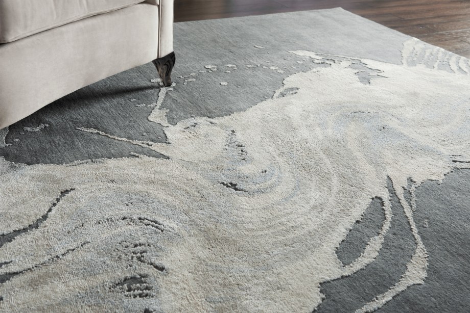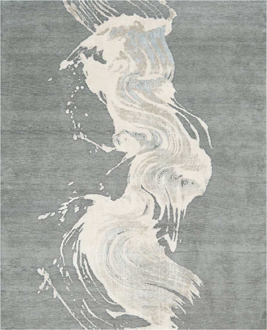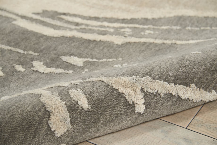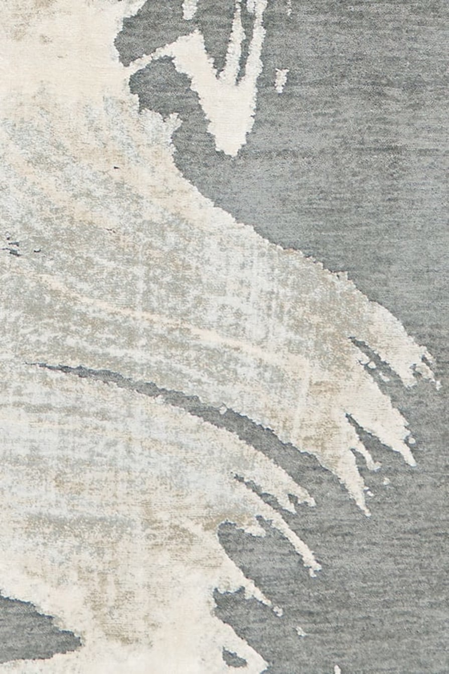 The fluidity of the light grey flows down this chic wool silk rug, creating a subtle movement.