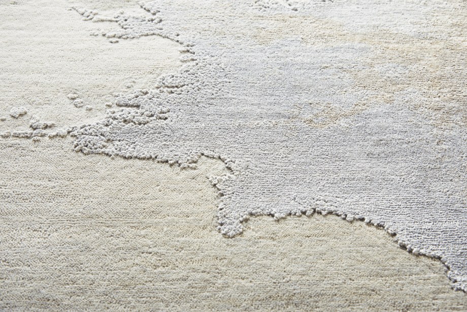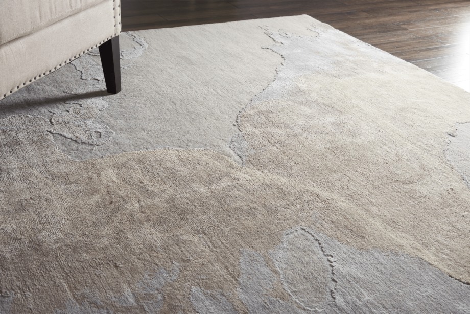This magnificent Christopher Guy rug conveys a magical sense of motion and serenity, with flowing patterns of gold and deep earth tones flowing across the wool and silk hand-woven pile like a river. Complex coloring and intricate texturing make this rug thoroughly modern, but also utterly timeless.